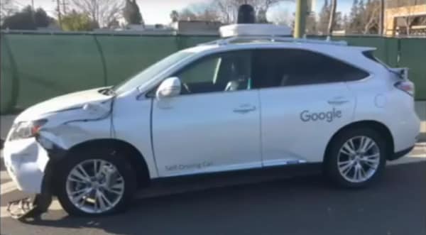 Figure 2: This Lexus model Google Self-Driving car had a fender-bender when it didn't see a bus. With over a million miles and a pristine record, it's forgiveable in my book, because it's still a better driving record than most humans I know, including me.